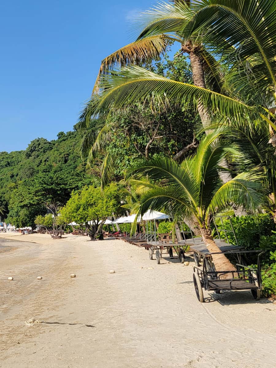 Tariffe di accesso alla spiaggia. Se non soggiornate in uno dei tre resort presenti, dovrete pagare 50 THB (1,50 USD) per accedere ai lettini nella parte meridionale della spiaggia. La tariffa include l’uso degli ombrelloni e dei servizi di base dalle 8:00 alle 18:00.