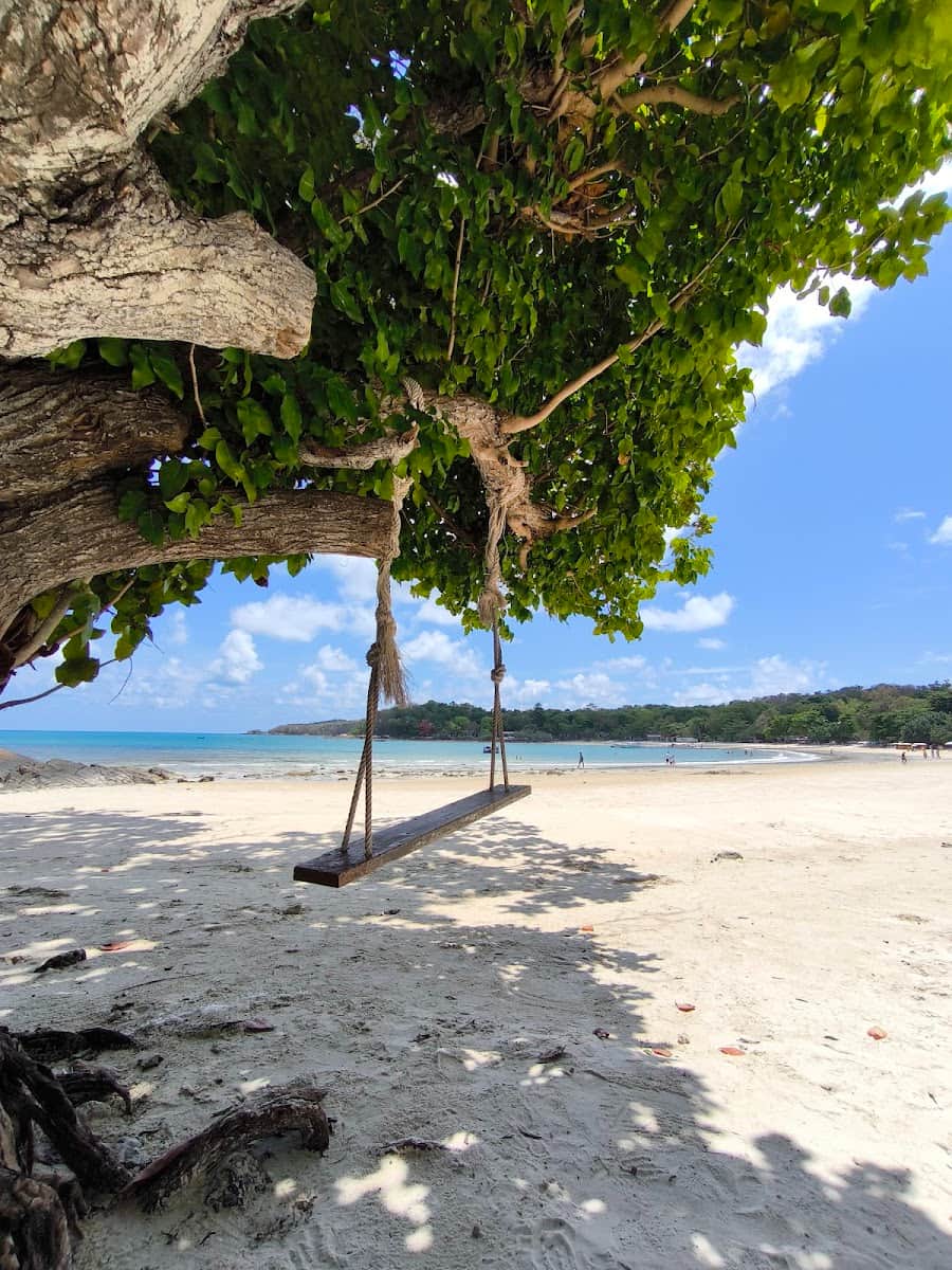 Baia protetta. Questa famosa spiaggia si trova in una baia naturale che blocca le onde grandi, rendendola super sicura per i bambini che vogliono nuotare. Ho visto famiglie con bambini piccoli giocare nell’acqua bassa mentre i genitori si rilassavano sulle sedie a sdraio lì vicino, particolarmente comodo per chi alloggia nei resort di Koh Samet o in alloggi vicini alla spiaggia.