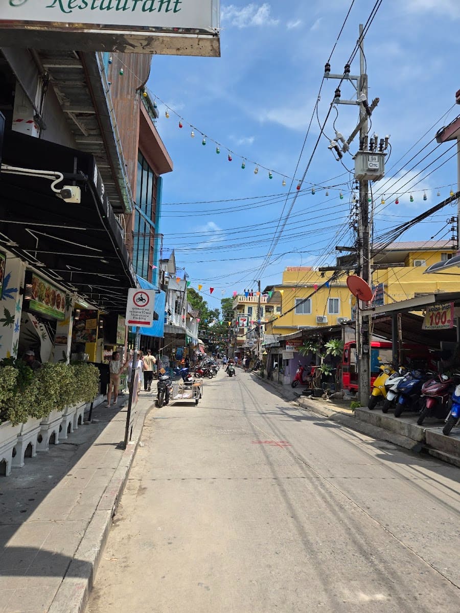 Cibo e bevande. Tre ristoranti sul lungomare servono di tutto, dal curry thailandese alla pizza cotta nel forno a legna. Il Paradise Restaurant è diventato il mio posto preferito: il loro curry verde costa 180 THB (5 USD) e i loro frullati di mango fresco 90 THB (3 USD). Diversi hotel e resort si trovano a pochi passi dalla spiaggia, rendendo facile godersi ogni pasto con vista sul mare.