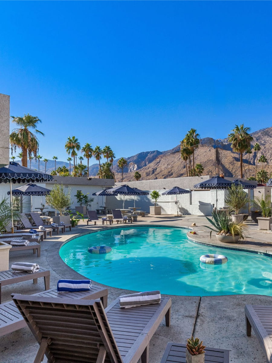 - The Saguaro Palm Springs — Un hotel colorato e vivace, noto per la sua atmosfera festosa, le feste in piscina e la posizione comoda per raggiungere a piedi le attrazioni del centro città.