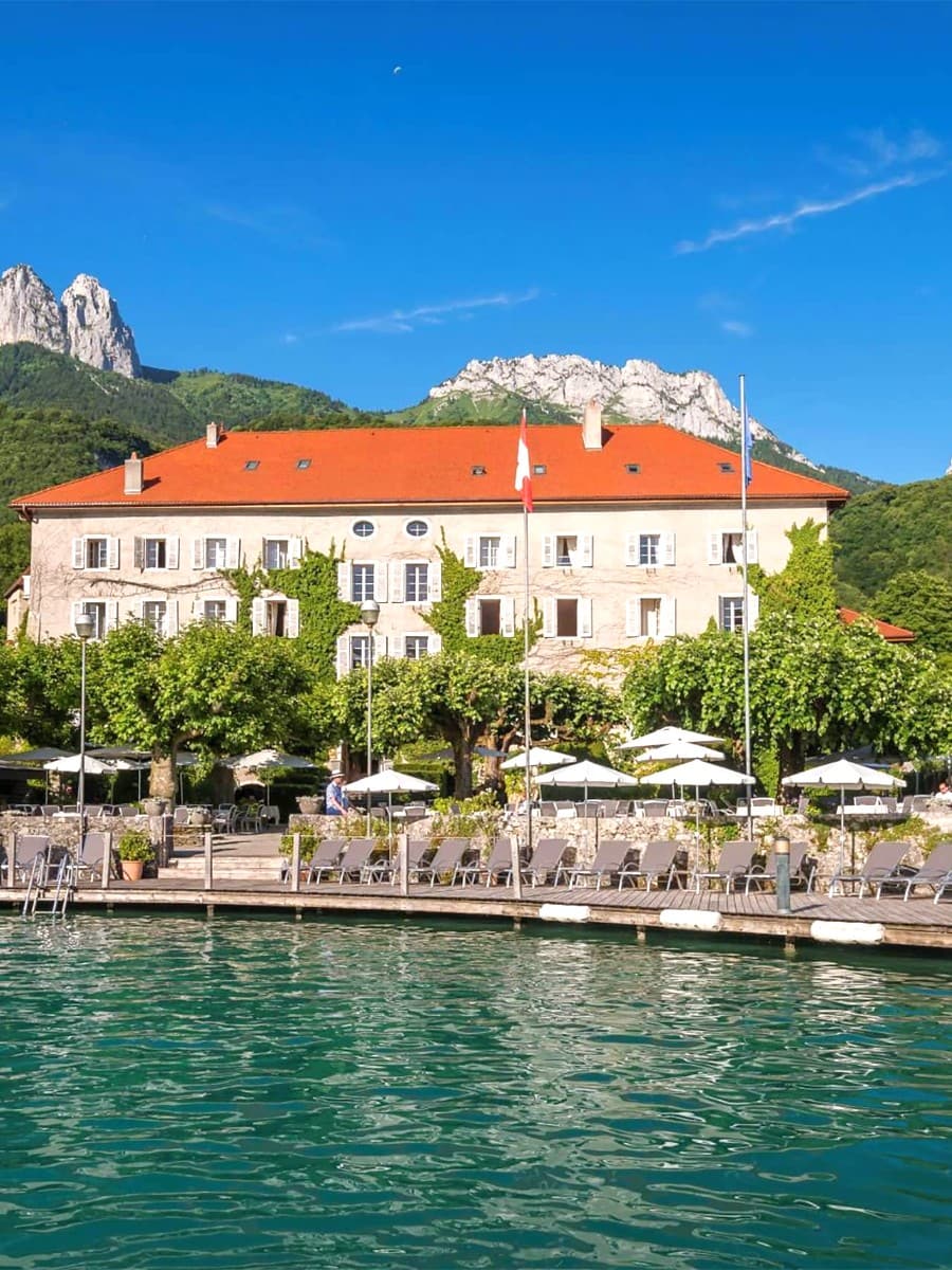 - Abbaye de Talloires – Questa storica abbazia trasformata in hotel di lusso offre camere sofisticate in una splendida cornice sul lago con servizi spa di alta qualità e cucina raffinata.